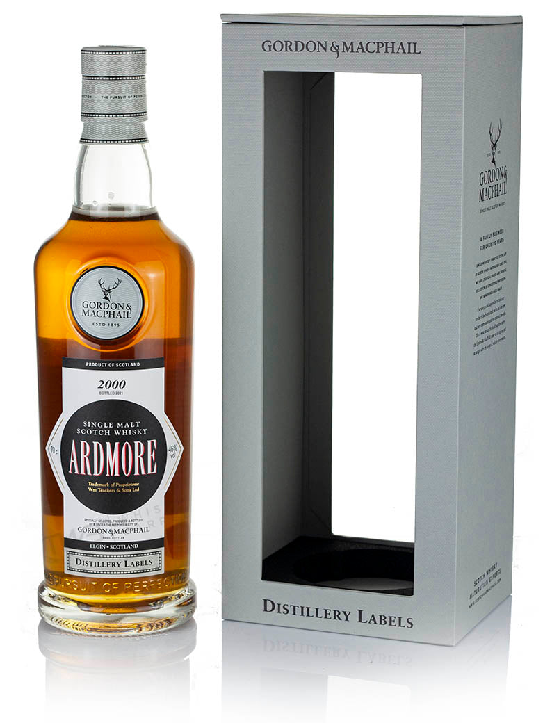 Ardmore 2000 vintage Highland single malt Scotch whisky. Matured in Refill Sherry hogsheads bottled 2021 by Gordon & MacPhail for the Distillery Labels series.