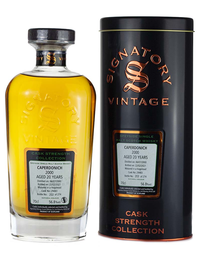 Caperdonich 20 Year Old 2000 vintage Speyside single malt Scotch whisky. Single cask hogshead #29483 bottled February 2021 by Signatory Vintage for the Cask Strength Collection. 274 numbered bottles.