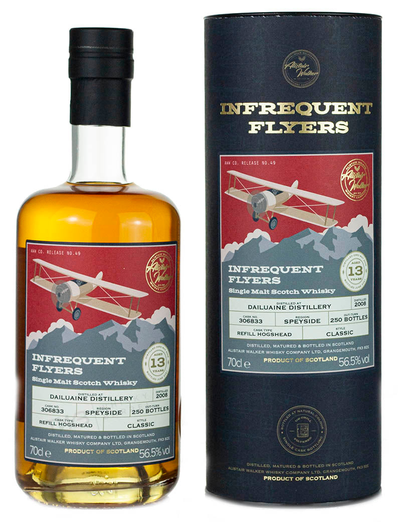 Dailuaine 13 Year Old 2008 vintage Speyside single malt Scotch whisky. Single refill Hogshead #306833 bottled 2021 by The Alistair Walker Whisky Co. for the Infrequent Flyers series. 250 bottles.
