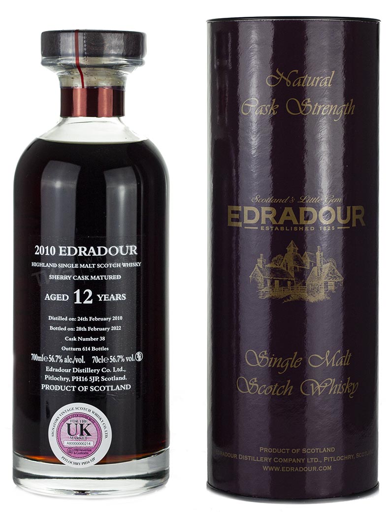 Edradour 12 Year Old 2010 vintage Highland single malt Scotch whisky. Single sherry butt #38 bottled in a Ibisco decanter on 28th February 2022. 614 bottles.