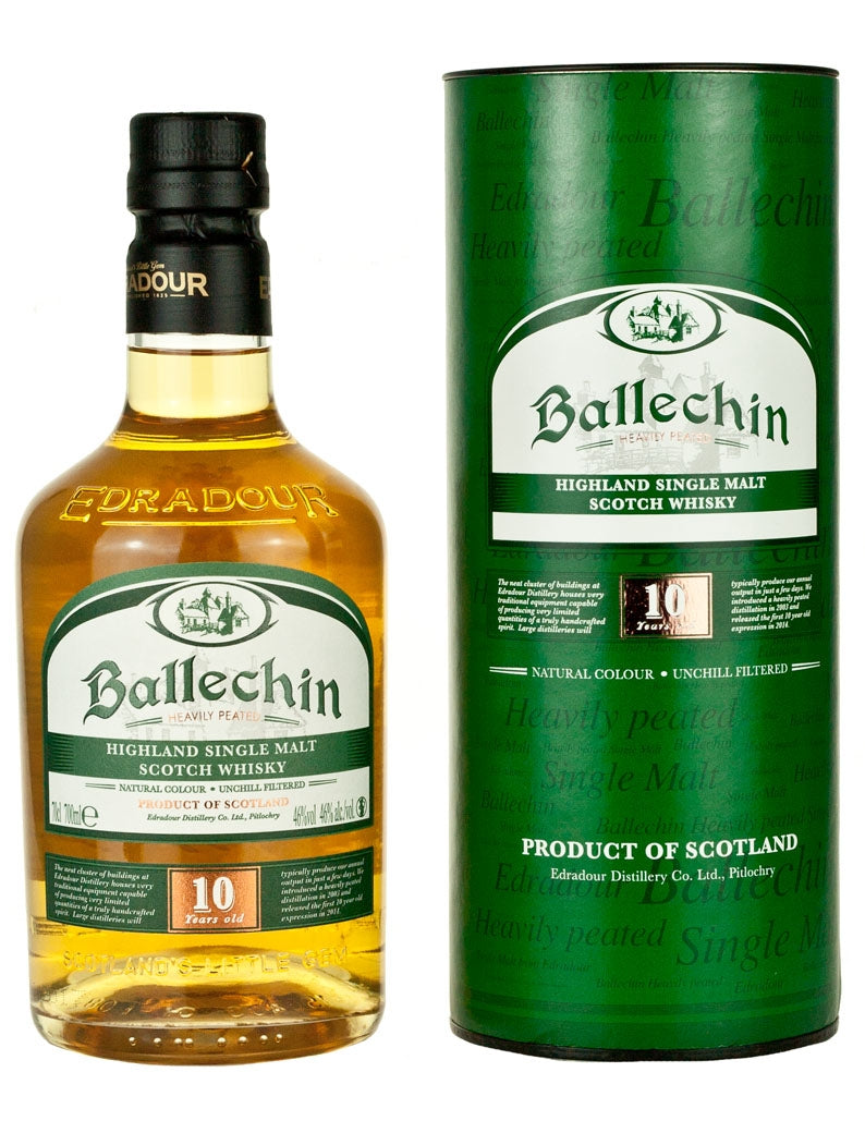 Ballechin 10 Year Old Highland peated single malt Scotch whisky distilled at Edradour distillery. Matured in ex-bourbon barrels and oloroso sherry casks.