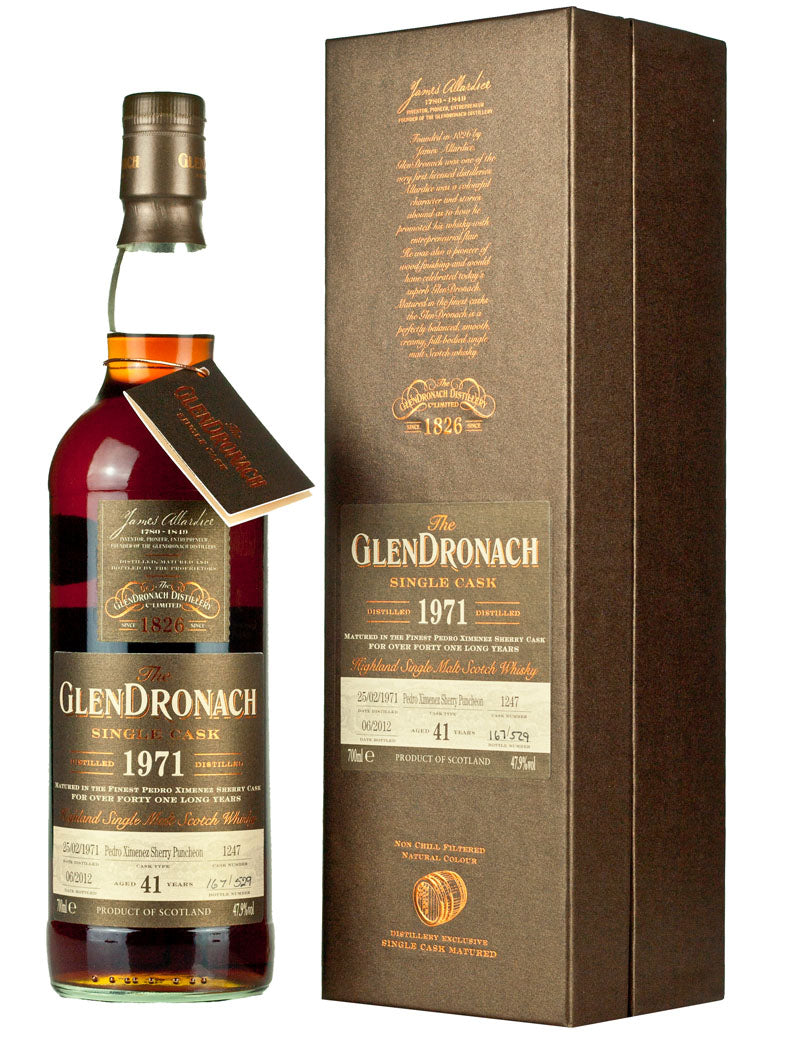 Step into the pinnacle of sherried grandeur with Glendronach 41 Year Old – 1971 Vintage, Batch 6 (Cask #1247).