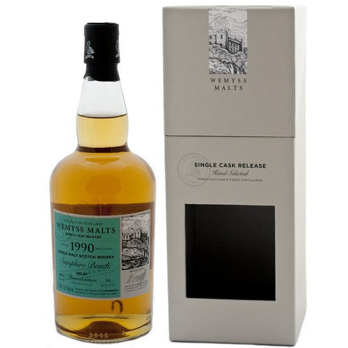 Bunnahabhain 1990ヴィンテージ 'Samphire Beach' アイラシングルモルトスコッチウイスキー。 2015年にWemyss Maltsによってボトリングされたシングルカスク。