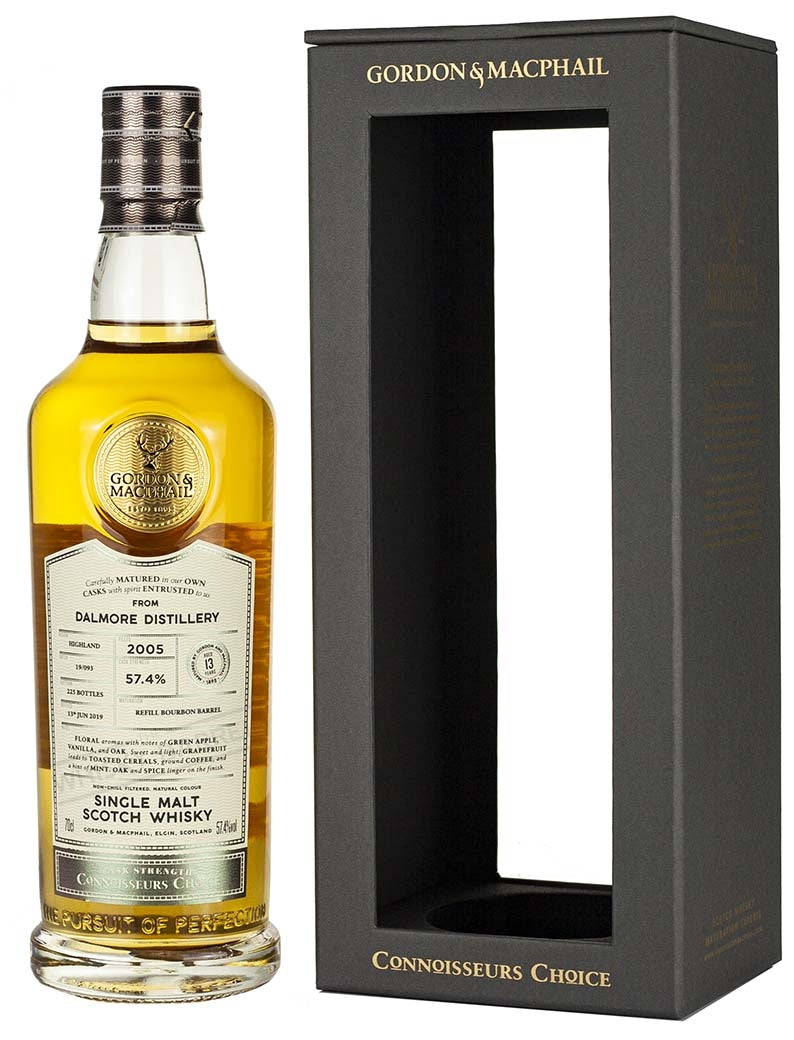 ダルモア 13年 2005年ヴィンテージ ハイランド シングルモルト スコッチウイスキー。シングルリフィルバーボンバレル #19/093、2019年6月にゴードン&マクファイルによってコノイサーズチョイスシリーズのためにボトリングされました。235本。