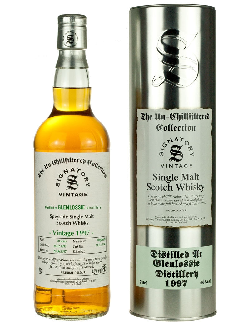 グレンロッシー 20年 1997年ヴィンテージ スペイサイド シングルモルト スコッチウイスキー。ホグスヘッド #1135 & #1136 で熟成され、2017年6月にサイグネチャリー ヴィンテージによってアンチルフィルタードシリーズのためにボトリングされました。
