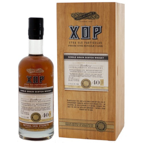 インバーゴードン 40年 1974年ヴィンテージ ハイランド シングルグレイン スコッチウイスキー。シングルカスクリフィルバレル #10577、2014年12月にダグラス・レイング&コーによって Xtra Old Particularシリーズのためにボトリングされました。171本の番号付きボトル。