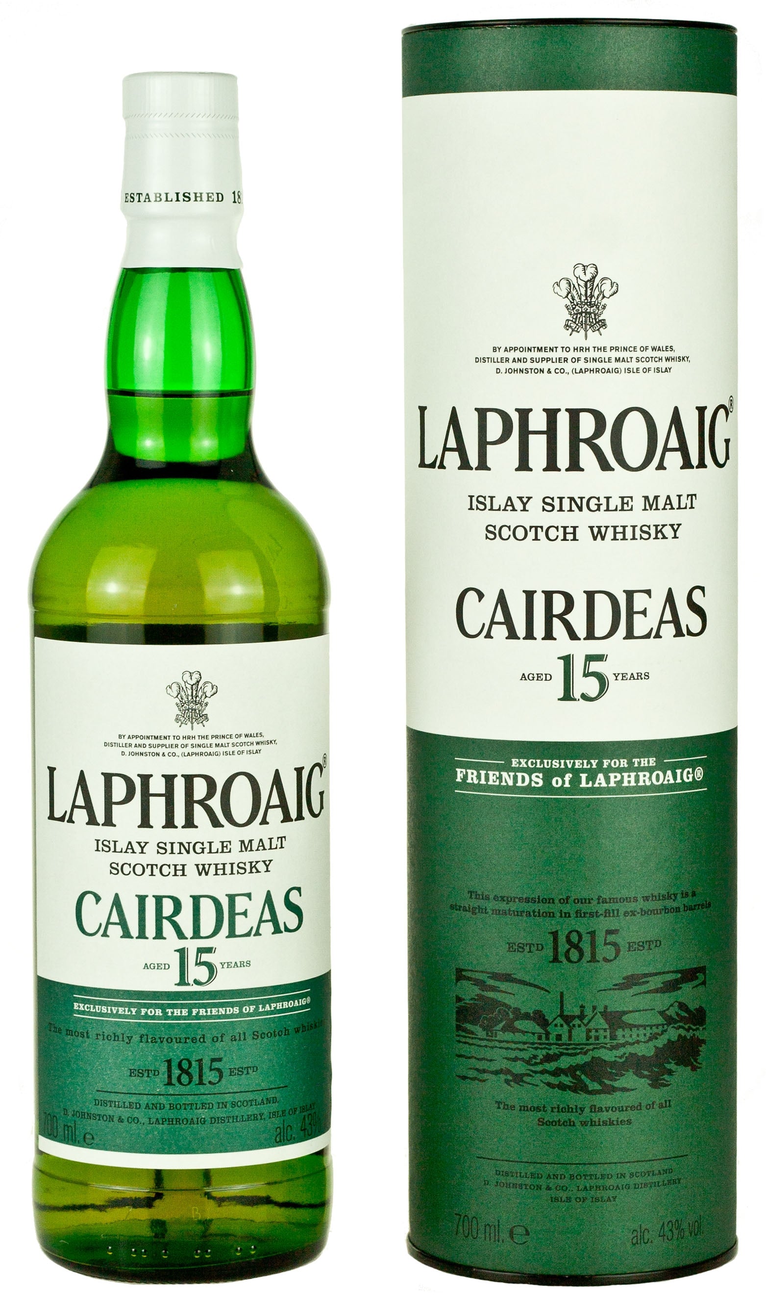ラフロイグ 15年 アイラ シングルモルト スコッチウイスキー。ファーストフィルのバーボンバレルで熟成され、2017年にボトリングされました。