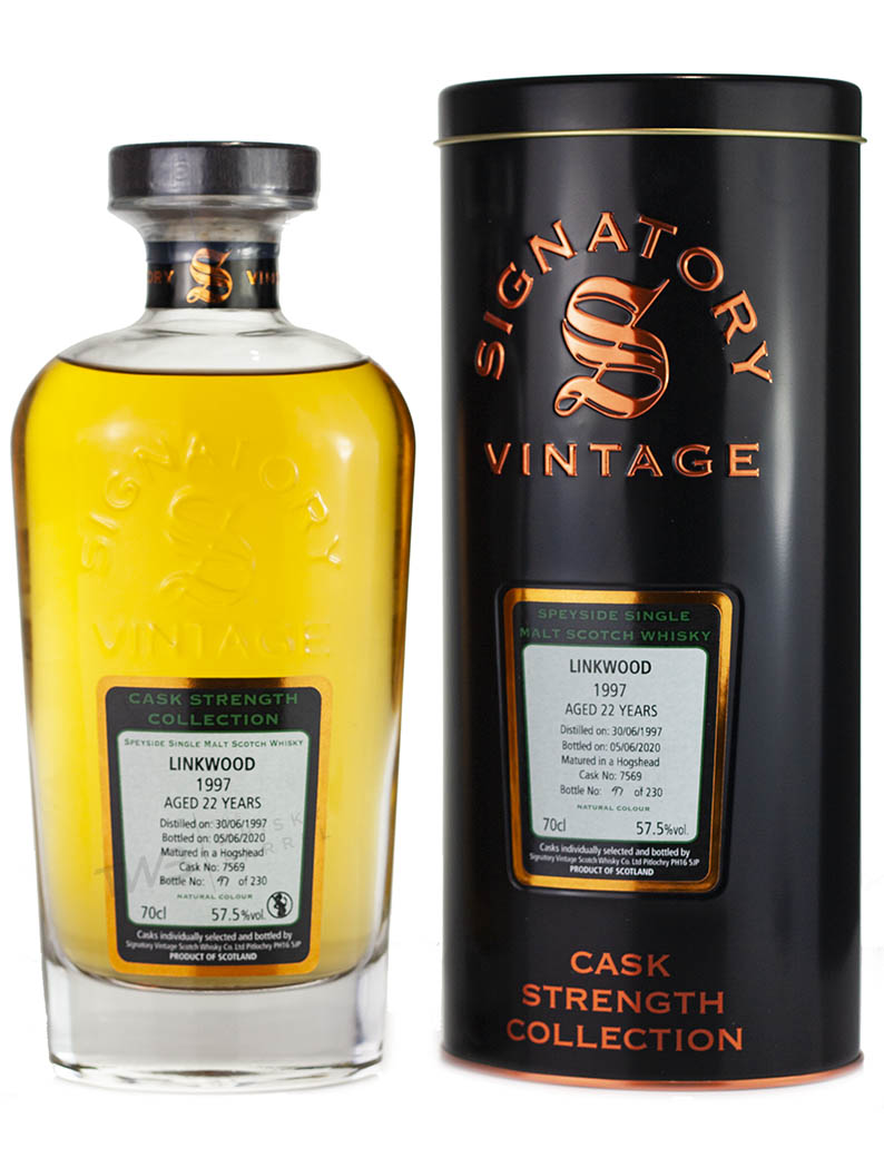 Linkwood 22 Year Old 1997 vintage Speyside single malt Scotch whisky. Single cask hogshead #7569 bottled June 2020 by Signatory Vintage for the Cask Strength Collection. 230 bottles.