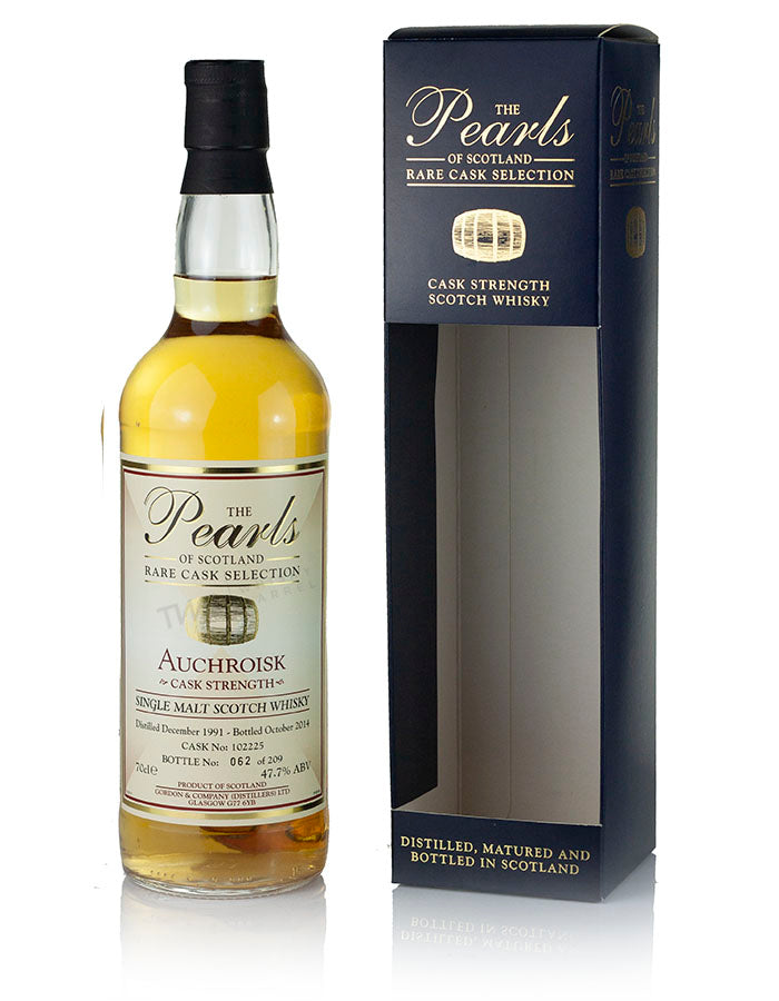 Auchroisk 22 Year Old 1991 Pearls of Scotland is a refined Speyside single malt Scotch whisky drawn from single cask #102225. Distilled in December 1991 and bottled in October 2014 by Gordon & Co. for the Pearls of Scotland series, this elegant whisky was matured for over two decades, developing layers of orchard fruit, honeyed malt, and gentle oak spice. A limited release of just 209 bottles.