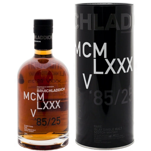 Bruichladdich DNA 3rd 1985 MCMLXXXV vintage Islay single malt Scotch whisky. Master distiller Jim McEwan has married together the very last mid-eighties vintage sherry butts and American oak casks in the Bruichladdich warehouses. Botted 2011.