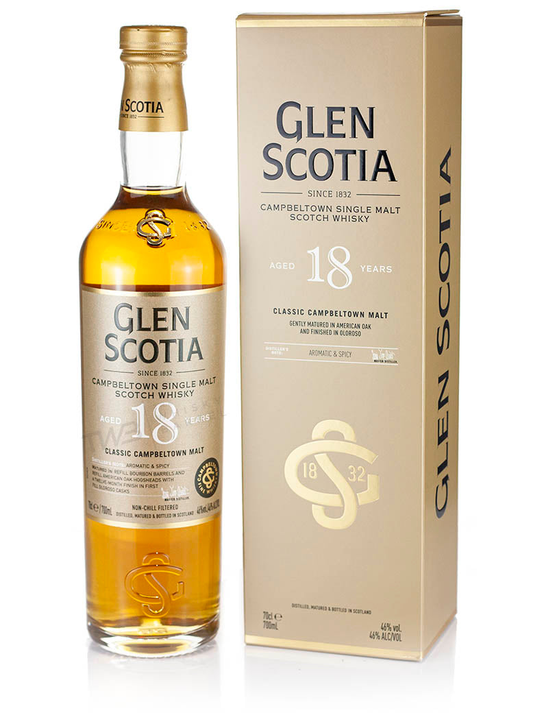 Glen Scotia 18 Year Old Campbeltown single malt Scotch whisky. Double matured in first fill oloroso sherry casks.