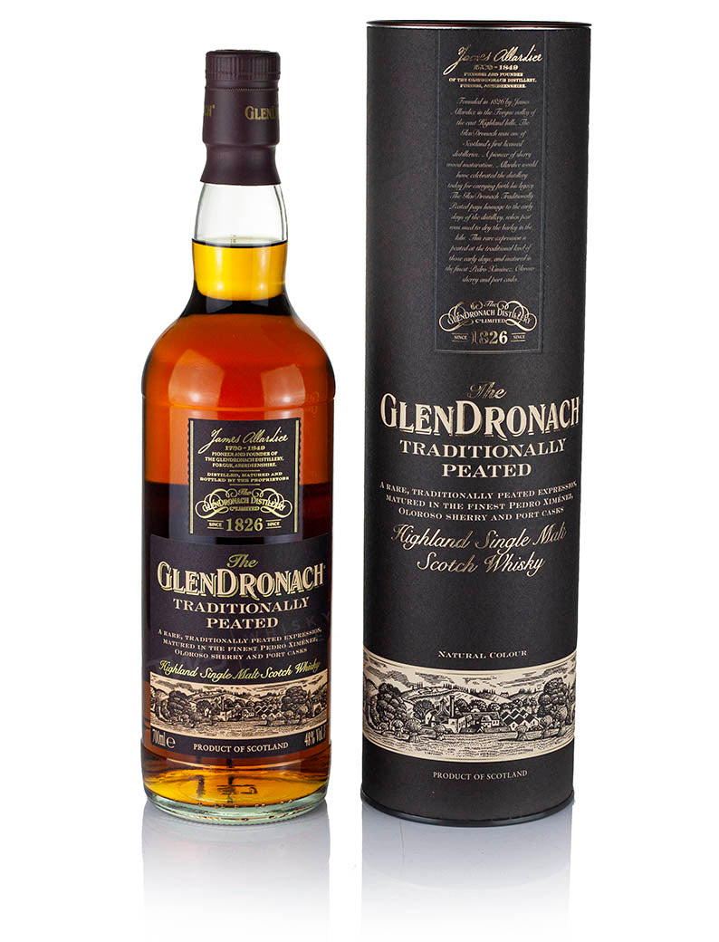 Glendronach Traditionally Peated Highland single malt Scotch whisky. The first ever peated expression of Glendronach - (25ppm). Double matured in Oloroso and Pedro Ximenez sherry casks.