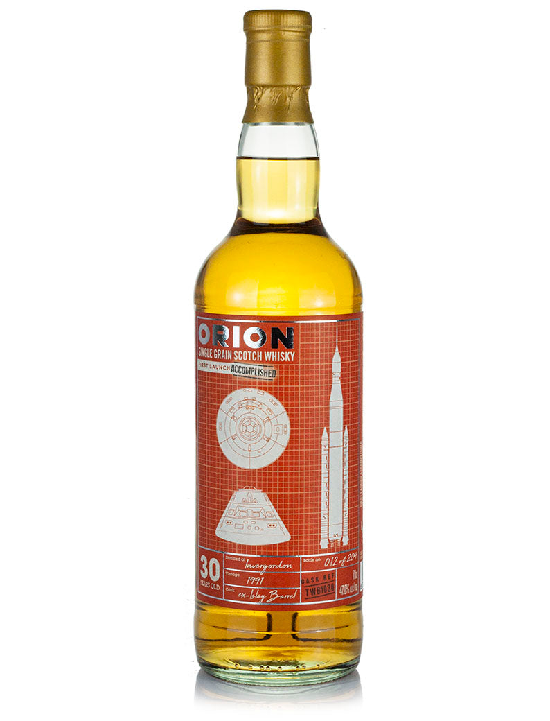 Invergordon 30 Year Old 1991 vintage Highland single grain Scotch whisky. Single cask ex-Islay barrel #TWB1030 bottled 2022. The first flight of the Artemis Moon program successfully launched on 16th November 2022 from the Kennedy Space Center. Thrusting the Orion spacecraft towards the Moon.