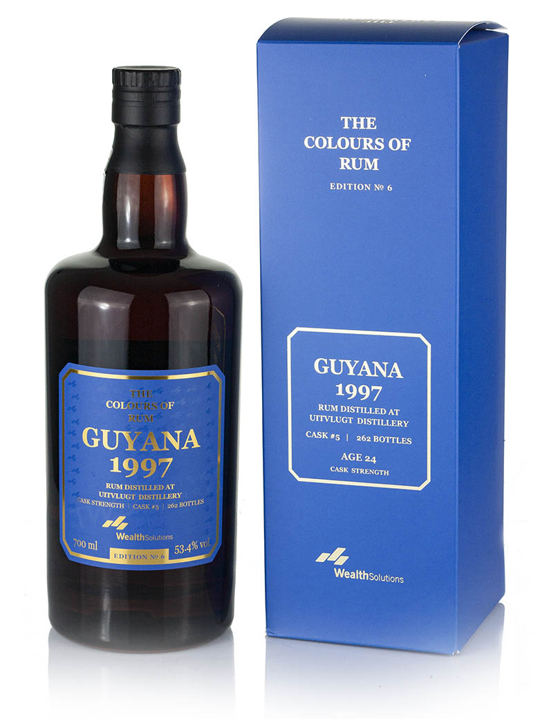 Uitvlugt 24 Year Old 1997 vintage Caribbean Golden Rum from Guyana matured in a Double Wooden Pot Still. Edition 6. Single ex-cognac cask #5 with 2-years Tropics Ageing. Bottled 2022 by Wealth Solutions of The Colours of Rum series. 262 bottles.