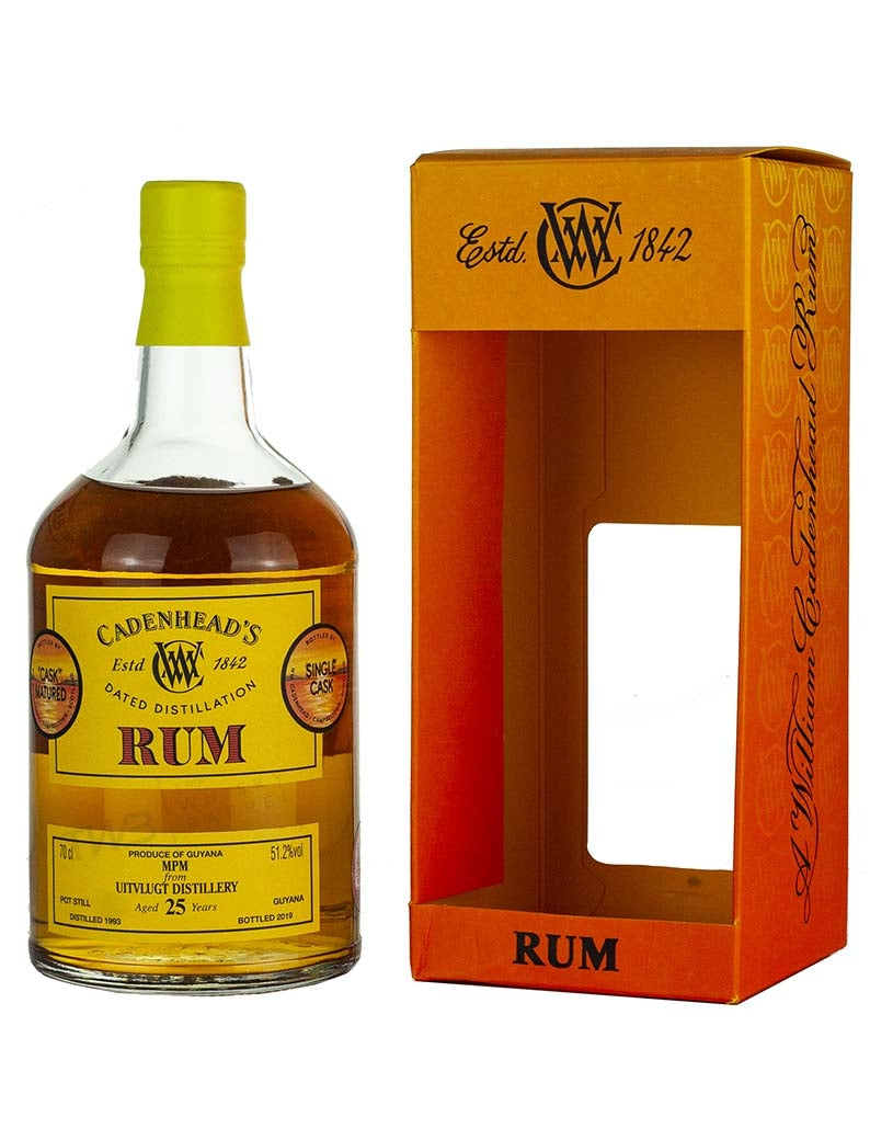 Uitvlugt 25 Year Old 1993 vintage rum from the closed distillery in Guyana. Made in the legendary Port Mourant double wooden pot still to produce a heavy style of rum. Single cask #38 distilled 1993 and bottled 2019 by Cadenhead's. 216 bottles.