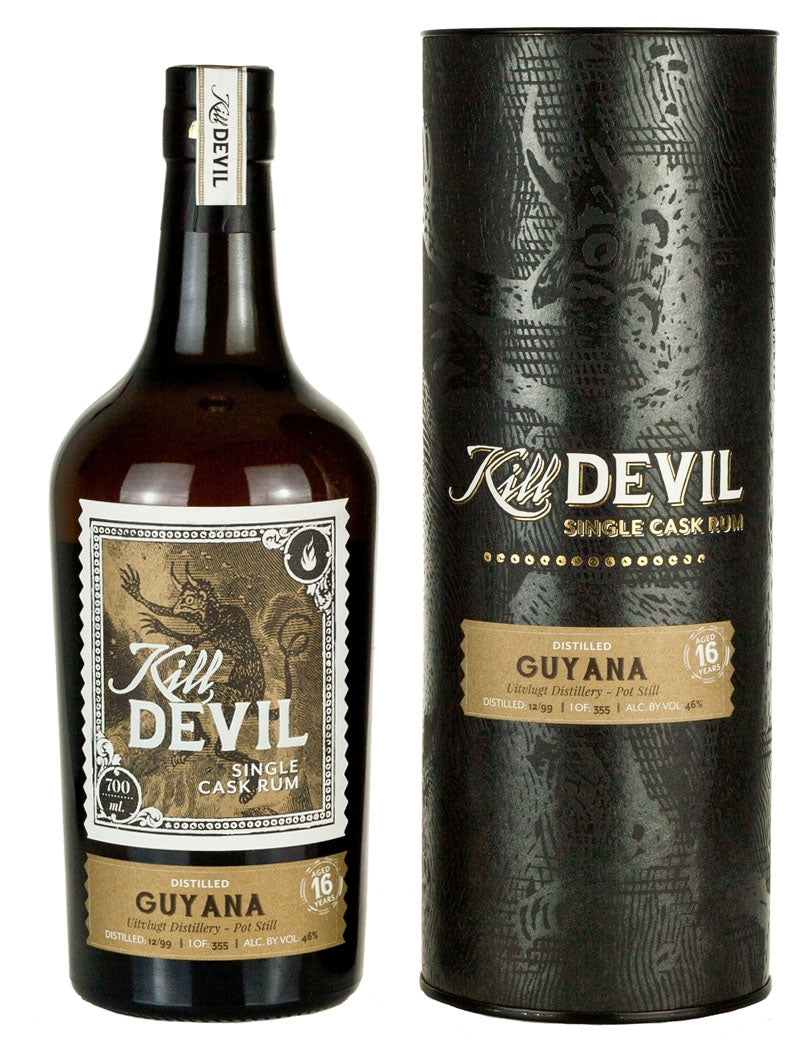 Uitvlugt 16 Year Old 1999 vintage single cask Guyanese Golden Rum from the Caribbean. Distilled December 1999 in a Pot Still and bottled by Hunter Laing & Co. for the Kill Devil series. 355 bottles.